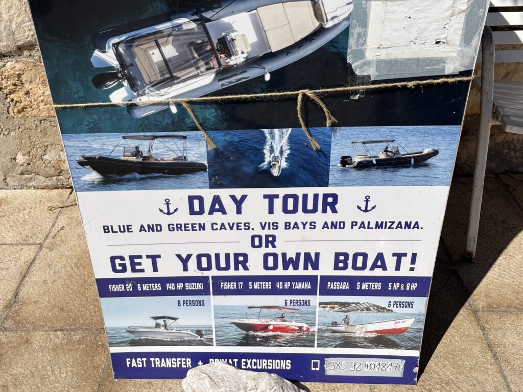 Para que vosotros no lo hagais, os cuento exactamente donde lo contratamos. Era un puesto ambulante junto a la playa de Križna, al lado de un monasterio. Ibamos de camino al puerto de Hvar y le preguntamos a un hombre que lo llevaba. Fue convincente y lo pintó todo muy fácil: “barco sencillo, buen estado, sin problema”. Fue una decisión impulsiva, tomada en caliente, sin comparar ni revisar con calma. Ya era tarde y no queriamos que pasara más tiempo. Había leido que se alquilaban en puestos en la riva y me confié. Y ahí estuvo el error. No era un alquiler formal ni una empresa establecida, sino un trato rápido que, una vez pagado en efectivo y sin fianza, se lavaban las manos. La verdad es que sonaba mal ya de desde el principio. A la vuelta intentamos reclamar, pero ya no habia nadie allí y no cogian el telefono.