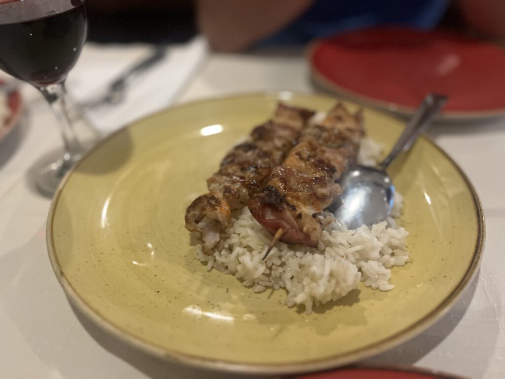 - Brochetas de carne con arroz : 18€