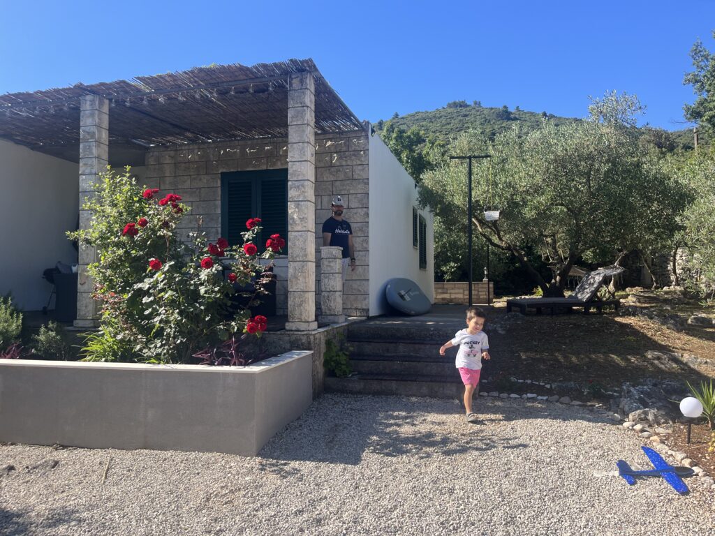 Nuestro alojamiento estaba a 1 minuto de la playa de Vrbovica, una cala tranquila ideal para bañarse sin grandes multitudes. Allí no solo podréis disfrutar de un día de sol y mar, sino que también es un lugar perfecto para probar actividades en familia, como el paddle surf en Vrbovica, o explorar otras propuestas para peques y mayores en Korčula con niños: actividades imprescindibles para toda la familia.