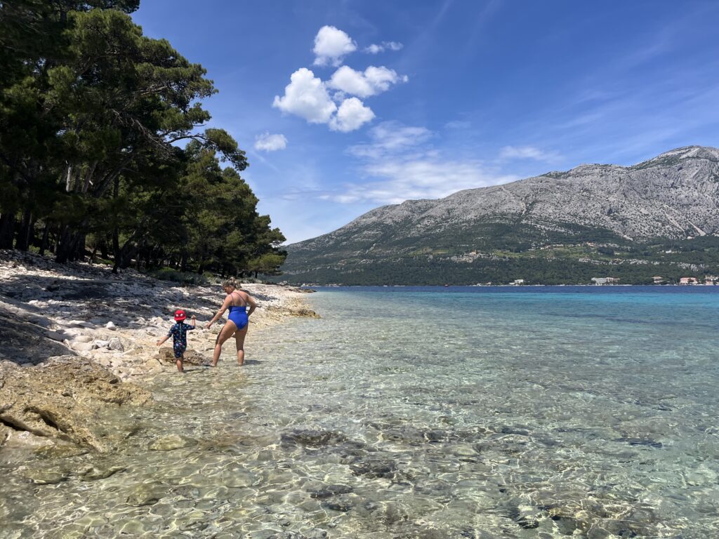 A lo largo de toda la costa de Badija hay pequeños tramos de playa de guijarros y salidas al mar desde roca plana que funcionan genial para bañarse. Muchas de estas zonas están bajo pinos, lo que aporta sombra natural cuando más aprieta el sol.