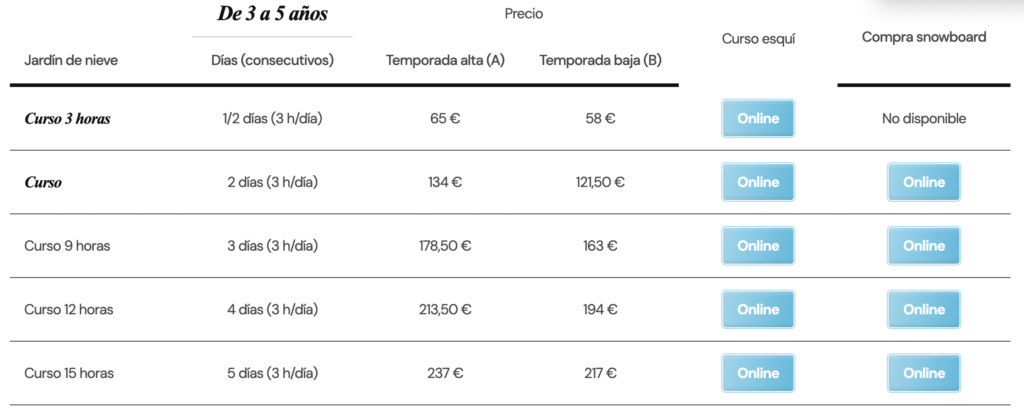 • Reserva: ¡Ojo! Es imprescindible reservar con antelación en la web de Grandvalira, sobre todo en semanas de vacaciones o festivos, porque las plazas vuelan. Aquí tienes el acceso directo a la web de la Escuela de Grandvalira para ver los detalles de última hora antes de subir.
