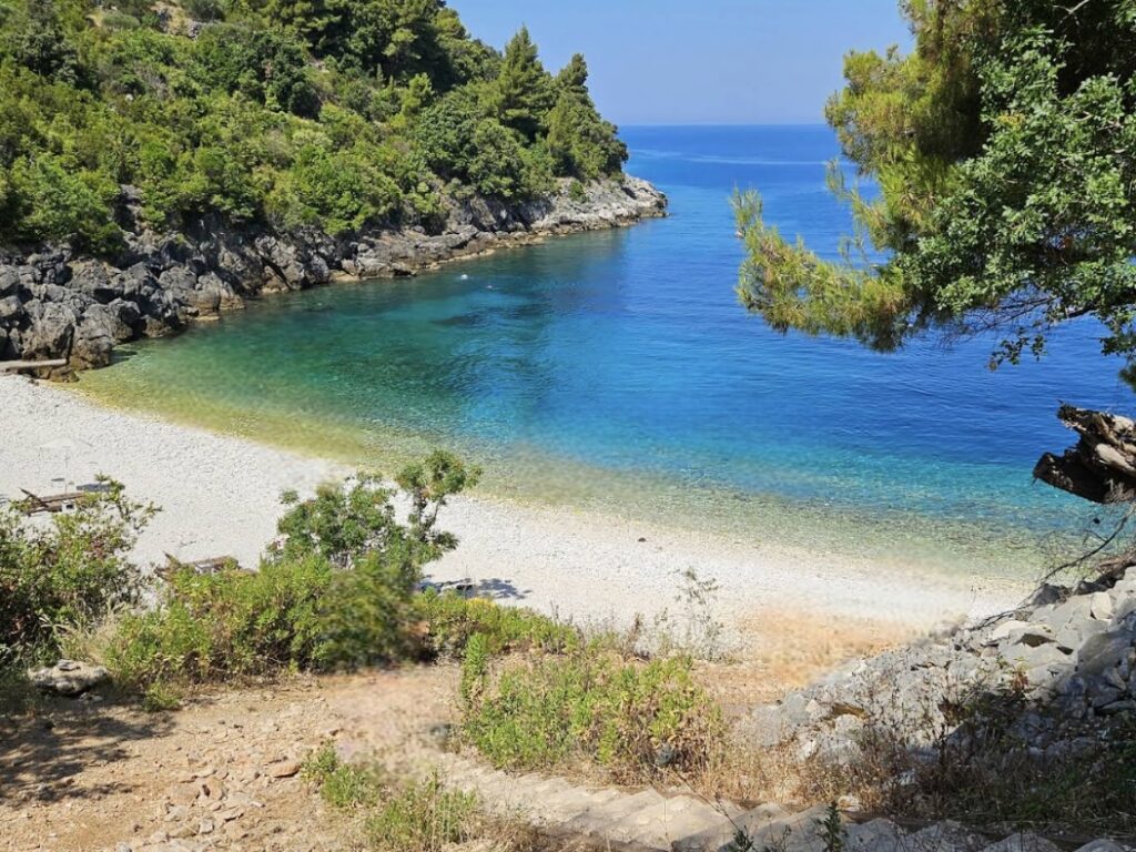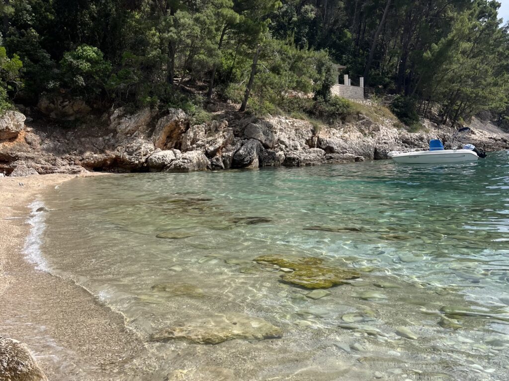 La isla de Badija está a solo 10–15 minutos en taxi boat desde KORČULA y no tiene carreteras, coches ni hoteles. Solo pinos, agua transparente y varias zonas de baño repartidas alrededor de la isla. No es “una playa”, son muchas.
